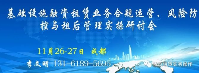 11月26日-27日举办“基础设施融资租赁业务合规运营、风险防控与租后管理实务操作专题研讨会”